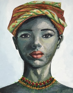 2025Groot realistisch Afrikaans portretvan een vrouw met ketting en een kraaltjes hoofdband