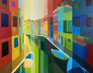 2022Kleurrijke weergave van een Venetiaanse wijk op linnen