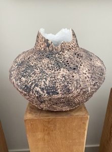 Bijzonder en stoer object (vaas/pot met verlaagde geglazuurde vlakken)